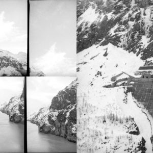 Joan Ayrton prend le parti de photographier le barrage avec un Tessina, minuscule appareil photographique apparu sur le marché à la fin des années 1950, au moment de l’achèvement du chantier de Mauvoisin. L’enjeu est celui d’un vis-à-vis historique entre deux ingénieries mythiques, et – chacune à sa façon – génératrices de récits. Le projet de Joan Ayrton s’est construit de façon empirique. Les premières prises de vues faites à 2600 m d’altitude un jour de soleil éclatant résonnent avec la découverte, le lendemain, d’un pendule suspendu sur toute sa hauteur, installé dans le ventre de l’imposant barrage, surveillant la moindre dilatation du béton. pendulum shift évoque pour Joan Ayrton le moment où le grand balancier de l’histoire, oscillant lentement entre un extrême et l’autre, entre crise et accalmie, se dérègle, projetant le monde dans une autre dimension, autrement plus inquiétante. L’ensemble de ces photographies se retrouvent dans le livre d’artiste édité à l’occasion de l’exposition au barrage de Mauvoisin par le Musée de Bagnes chez Roma Publications.